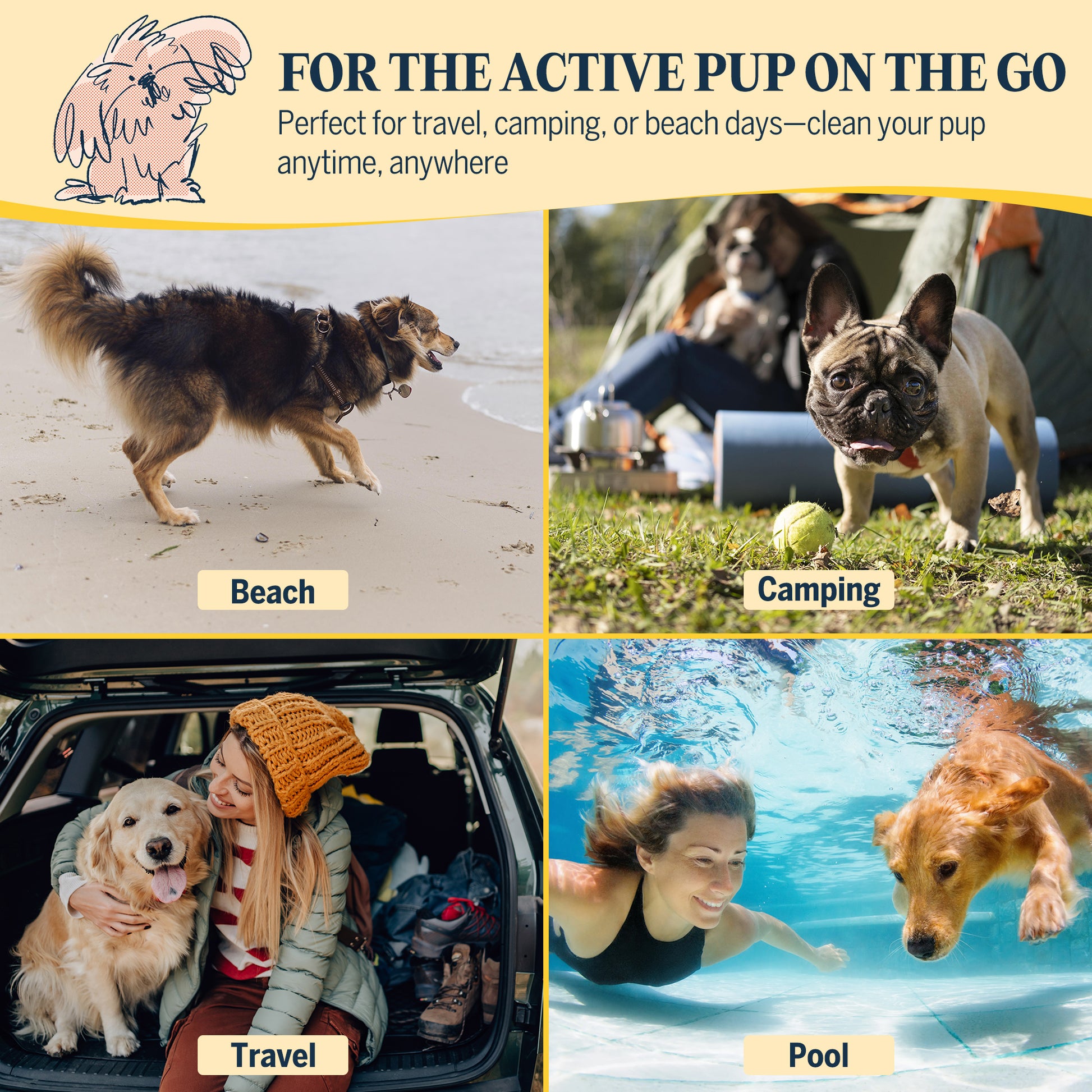 - No-Rinse, Waterless Foam – Quick & mess-free spray foam shampoo for a fast, no-rinse clean. Perfect for post-walks, camping, and travel
